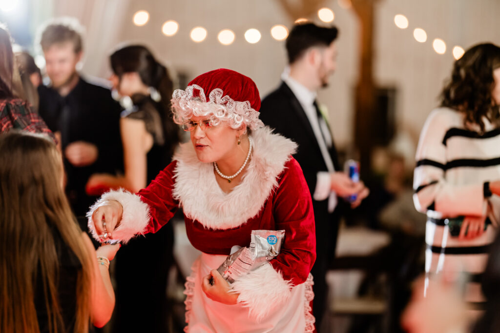 Emmie & Ryan’s December wedding at Barn in the Bend was pure holiday magic from beginning to end. Every detail glowed with warmth, laughter, and love—from heirloom tributes sewn into the bride’s garter to the joyful surprise of Mrs. Claus handing out snacks on the dance floor. It was festive, heartfelt, and oh-so-memorable.